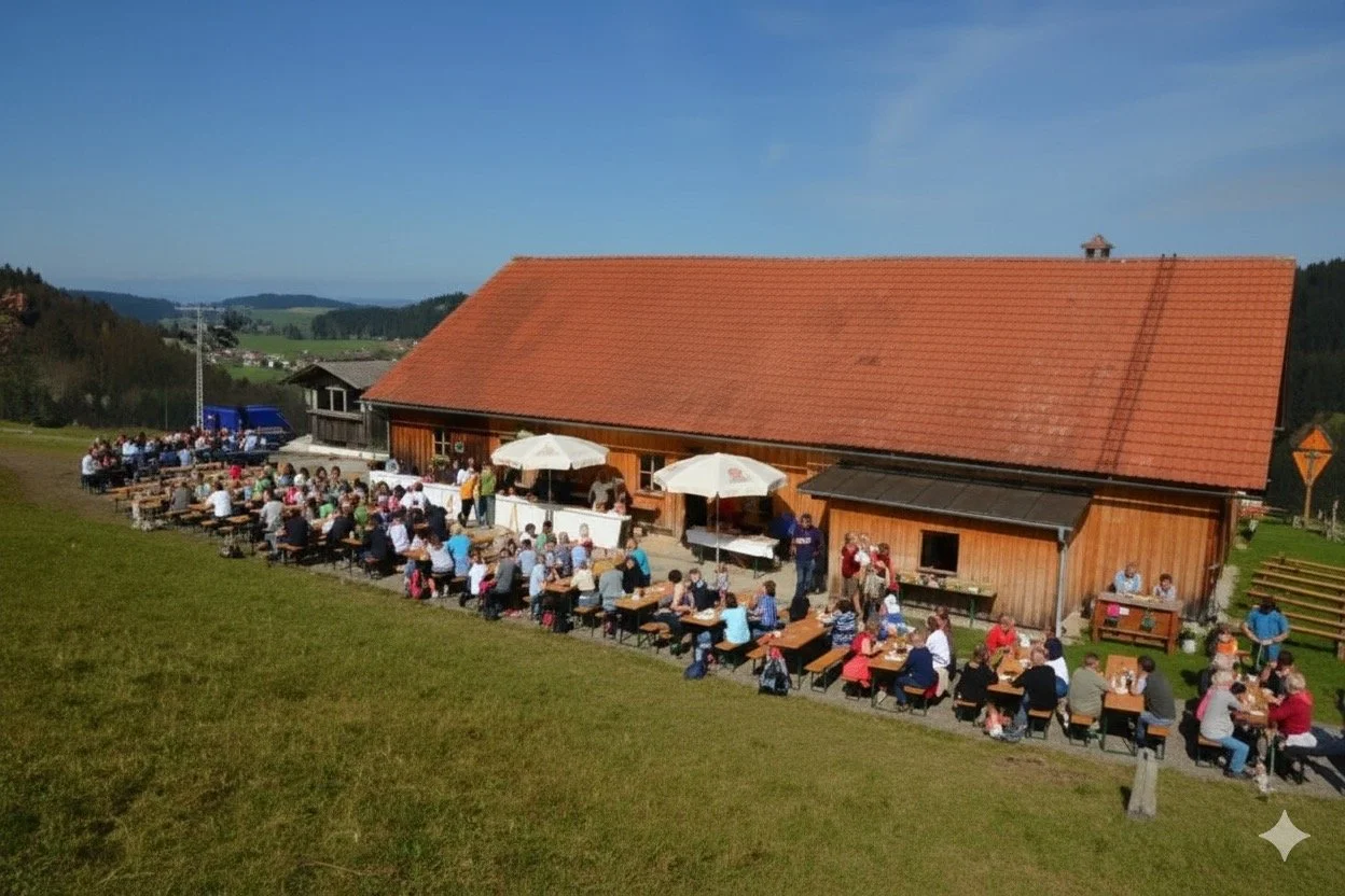 Sie liegt eingebettet in die sanften und doch kraftvollen Gipfel oberhalb von Oberstaufen, ganz in der Nähe von Immenstadt und dem Alpsee. Hier oben erwartet dich ein Panorama, das weite Horizonte schafft: Dein Blick schweift über das satte Grün der Allgäuer Alpen.